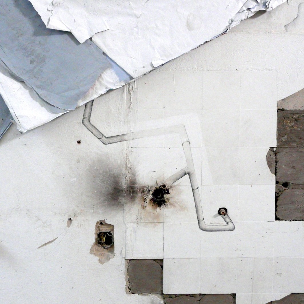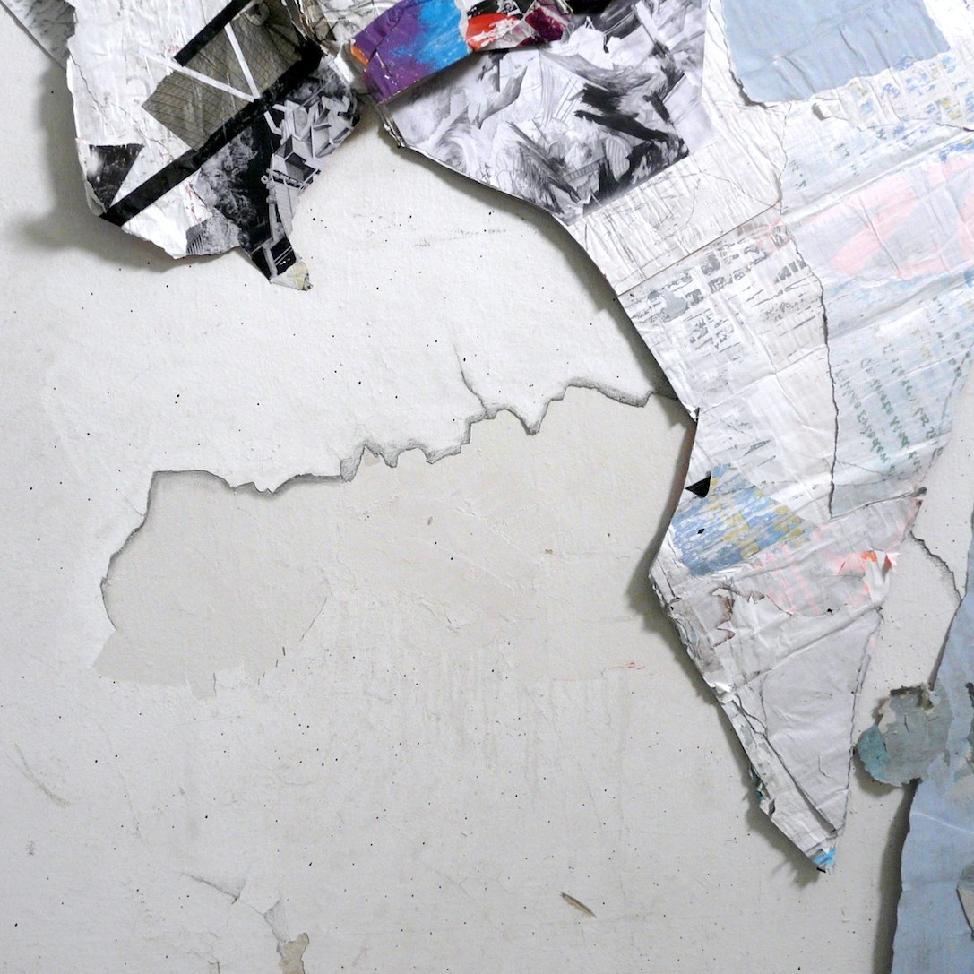 „Kollision II“, Kristin Albrecht, Collagierte Wandzeichnung / Collaged Mural Drawing, 360cm x 665cm x 25cm, 2016.