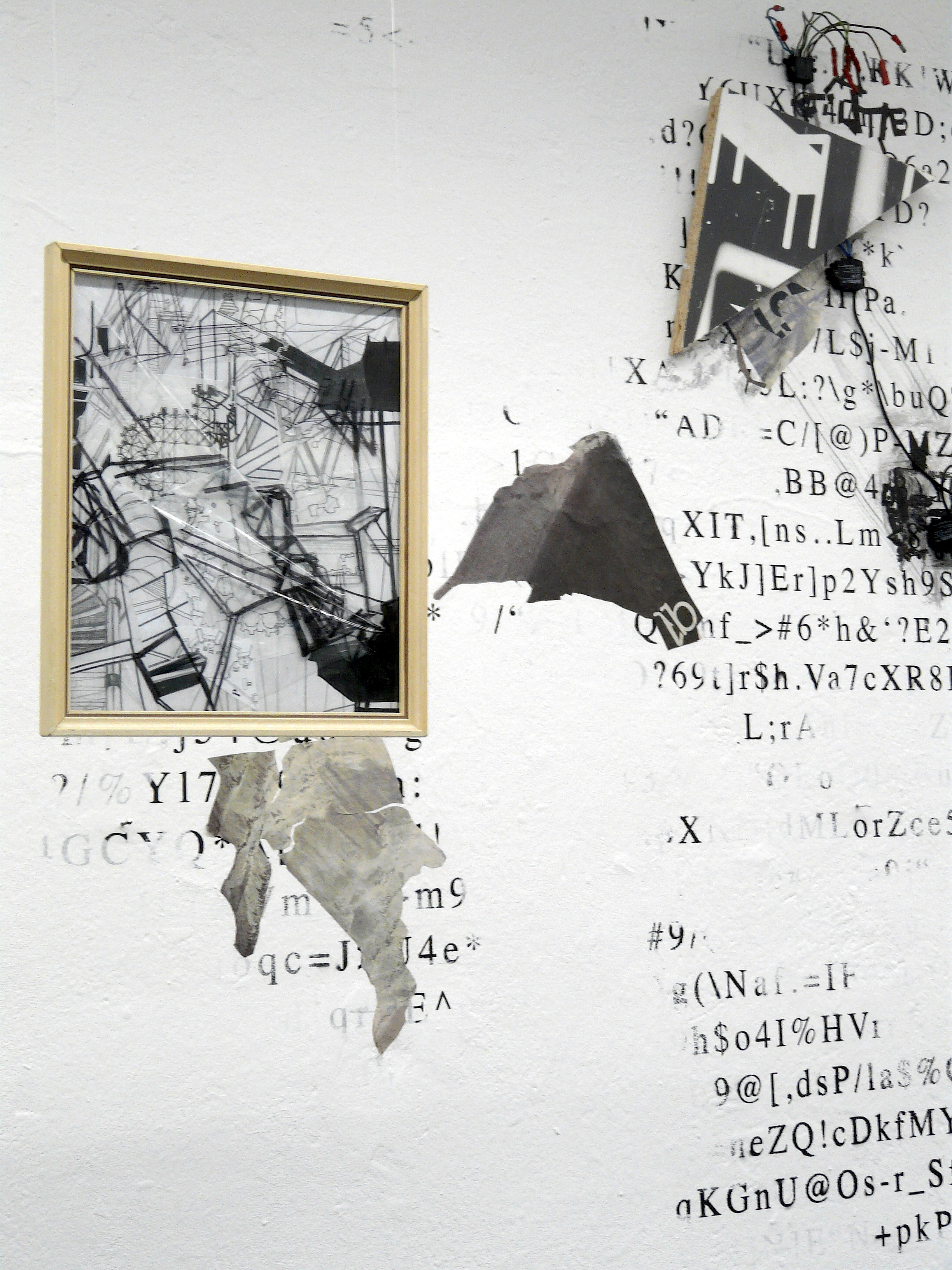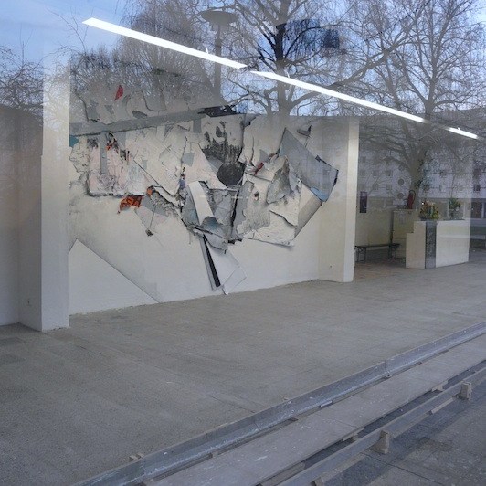„Kollision“, Kristin Albrecht (Meisterschülerabschluss) & Silvia Lorenz, Collagierte Wandzeichnung / Collaged Mural Drawing, 500cm x 340cm x 50cm, 2016